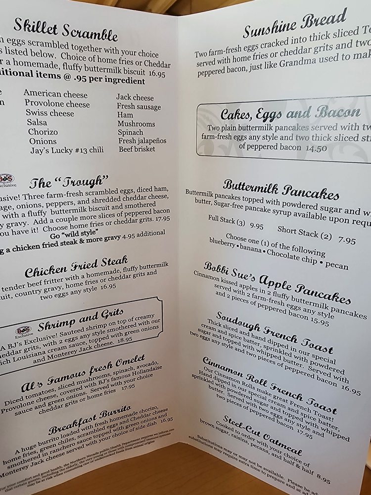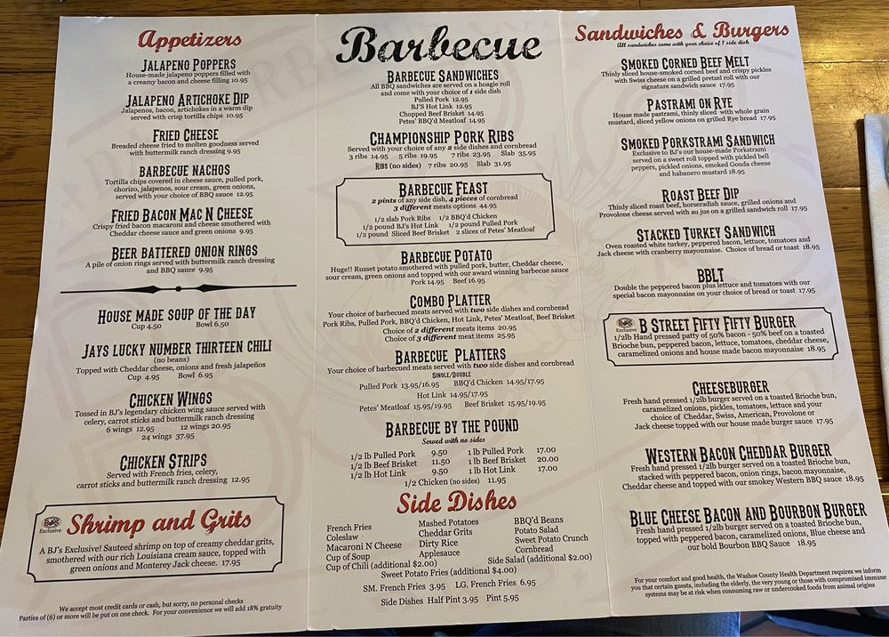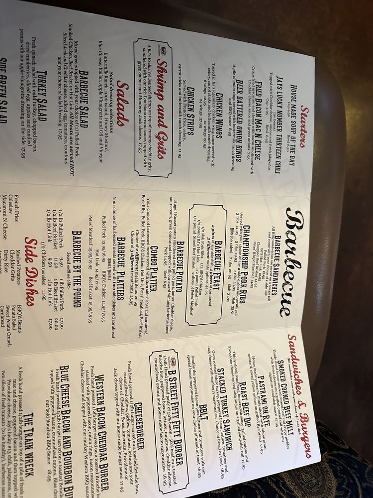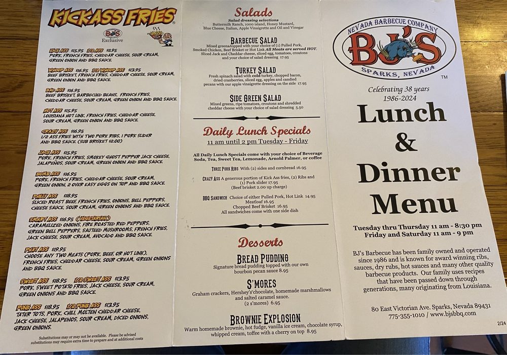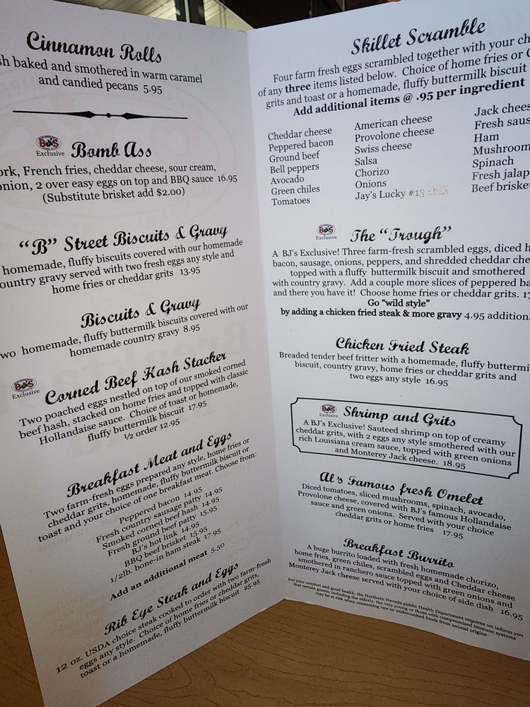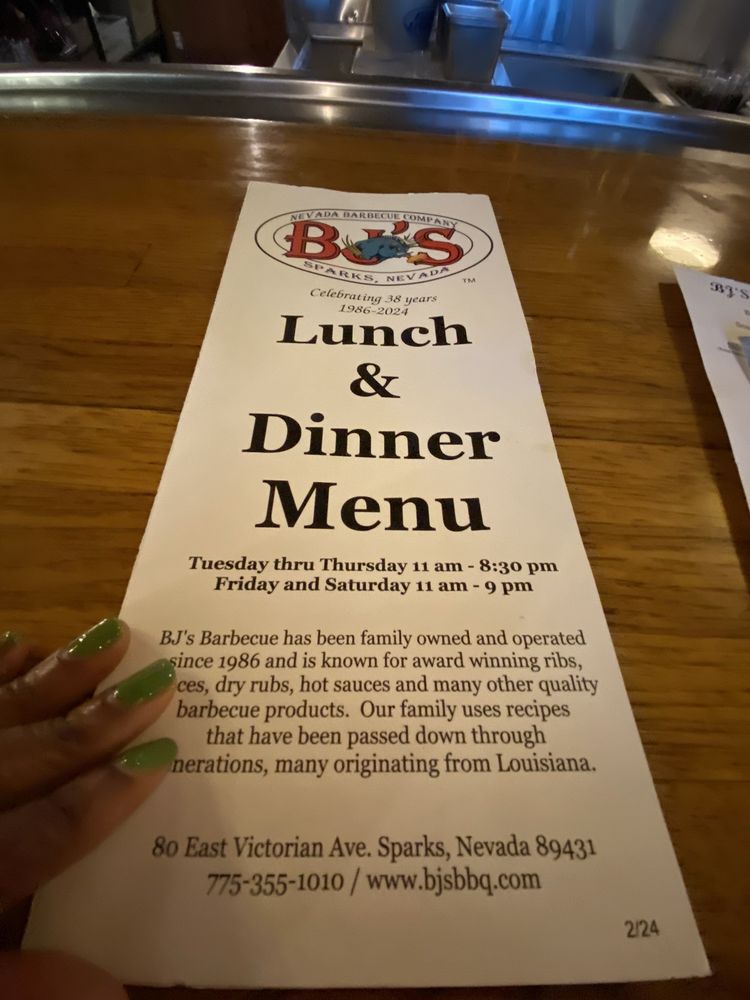 BJ's Nevada Barbecue offers a diverse menu with a focus on BBQ classics like pulled pork, brisket, and ribs. The starters, like the Fried Bacon Mac N Cheese and Beer Battered Onion Rings, set the tone for a hearty meal. The Shrimp and Grits dish, an exclusive at BJ's, is a must-try with its creamy cheddar grits and Louisiana cream sauce. The BBQ Salad options provide a lighter option with a choice of meat and fresh toppings. The atmosphere is warm and inviting, with attentive staff adding to the positive dining experience. The house-made sauces and sides like the crispy coleslaw are standouts. Overall, BJ's Nevada Barbecue is a reliable spot for delicious BBQ offerings in a cozy setting.